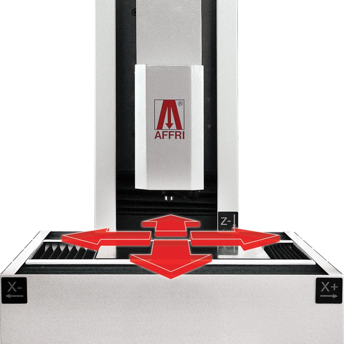 Automatic movements with automatic stop when contact is made. Total of 500 mm of motorized vertical stroke. The approach of the head moving to the piece as opposed to the piece moving to the head allows for more accurate, stable and safe measurements.MOTORIZED X/Y TABLE