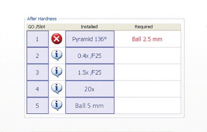 Manage the instrument tools and check if the installed tool is correct for the selected hardness test method.