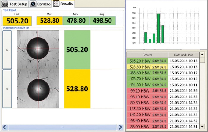 Setup the hardness test scales, the load time, the properties of the camera, the test method standards and the conversion scales.