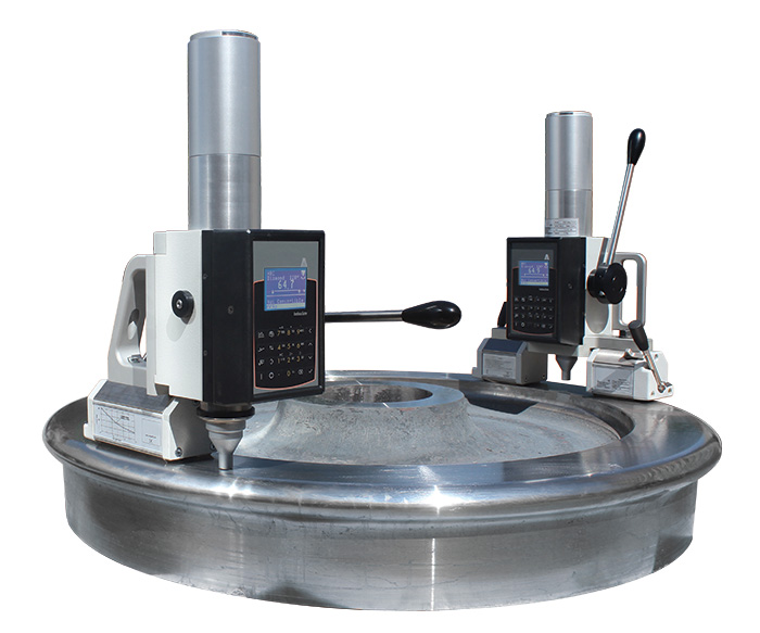 Portable hardness tester with magnetic clamping base for Rockwell, Superficial Rockwell, Brinell and Vickers methods. The first portable hardness tester that conforms to ASTM E-18 E-10 E384 and ISO 6508 6507 6506 international hardness standards. RSD MAG is a digital portable hardness tester with a manual drive for an automatic test cycle with hardness direct reading. Thanks to its magnetic clamping base it is possible to perform hardness tests on very bulky samples directly in the production department. It is completely uninfluenced by direction so that it is operative up to 360° degrees of positioning, even upside down. Load forces are applied through a dynamometric load cell which eliminates problems associated with dead weight systems on traditional testers. It is not affected by any external source of vibration, and it does not need to be leveled. Safe clamping on any surface, from round to flat, with self-allignment of the indenter with the measurement axis. LCD screen, user friendly interface, real time statistics and graphs and large archive storage. This hardness tester ensures the highest accuracy and repeatability at every measurement. Hardness tests in laboratory or in loco on tubes, profiles, valves and bulky or small pieces. For all metals: iron, steel, tempered steel, cast iron, brass, aluminum, copper and metal alloys. Heat treatment, hardening, nitriding, cementation and hardfacing.